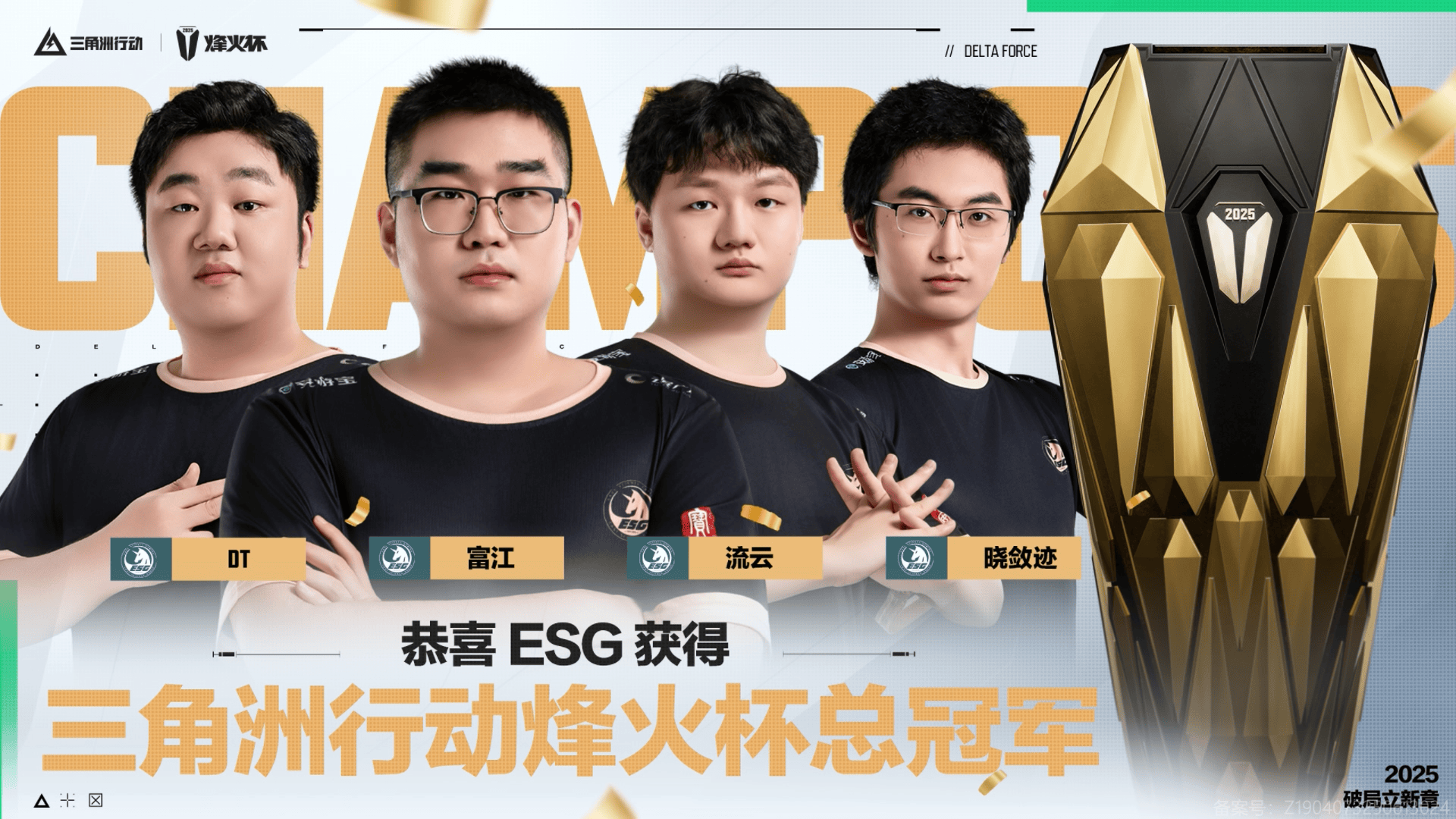 8月30日,三角洲行动烽火杯总决赛圆满落幕。经过多个赛段的比拼,6支战队从众多队伍中脱颖而出,站上总决赛舞台角逐最终冠军。在今日六局鏖战中,ESG战队在队员DT、富江、流云的出色发挥,以及晓敛迹的有力支持下,凭借稳定的表现与出色的战术执行登顶,成功捧起2025三角洲行动烽火杯总冠军奖杯!